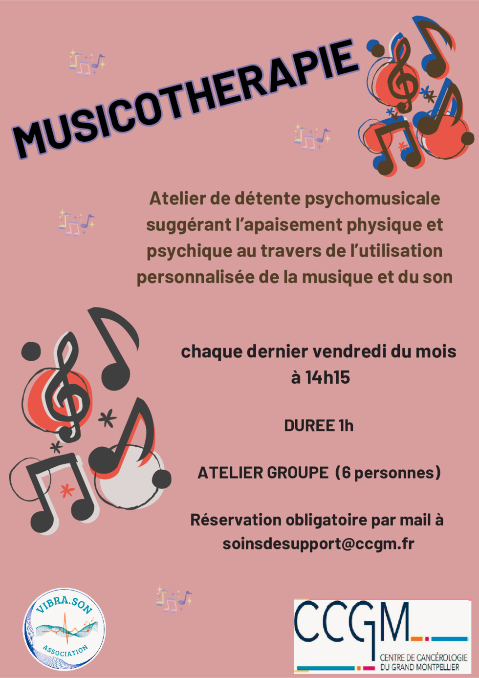 Le CCGM propose à ses patients un atelier de musicothérapie le 28/11/2025 à 14h15.