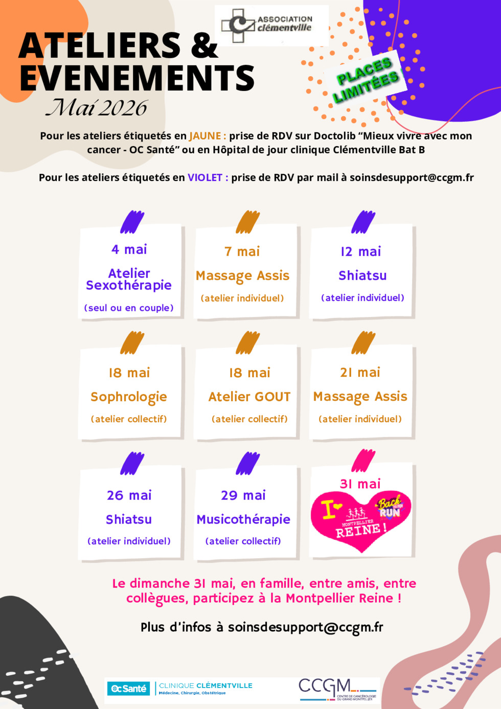 Retrouvez tous les ateliers "bien-être" proposés pour le mois de mai 2026 !