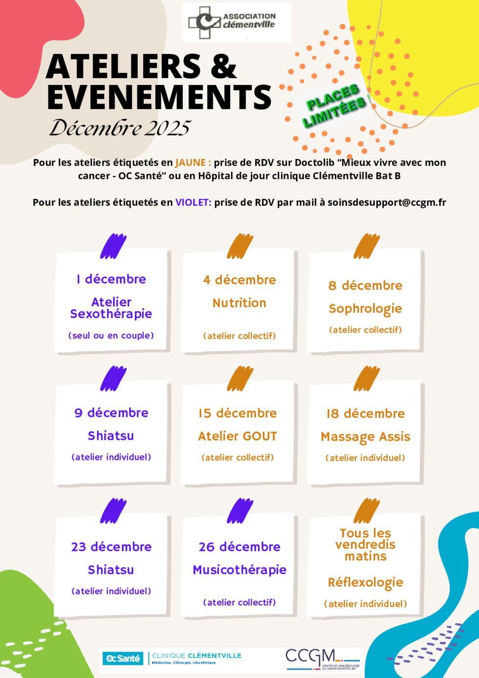 Retrouvez tous les ateliers "bien-être" proposés pour le mois de décembre 2025 !