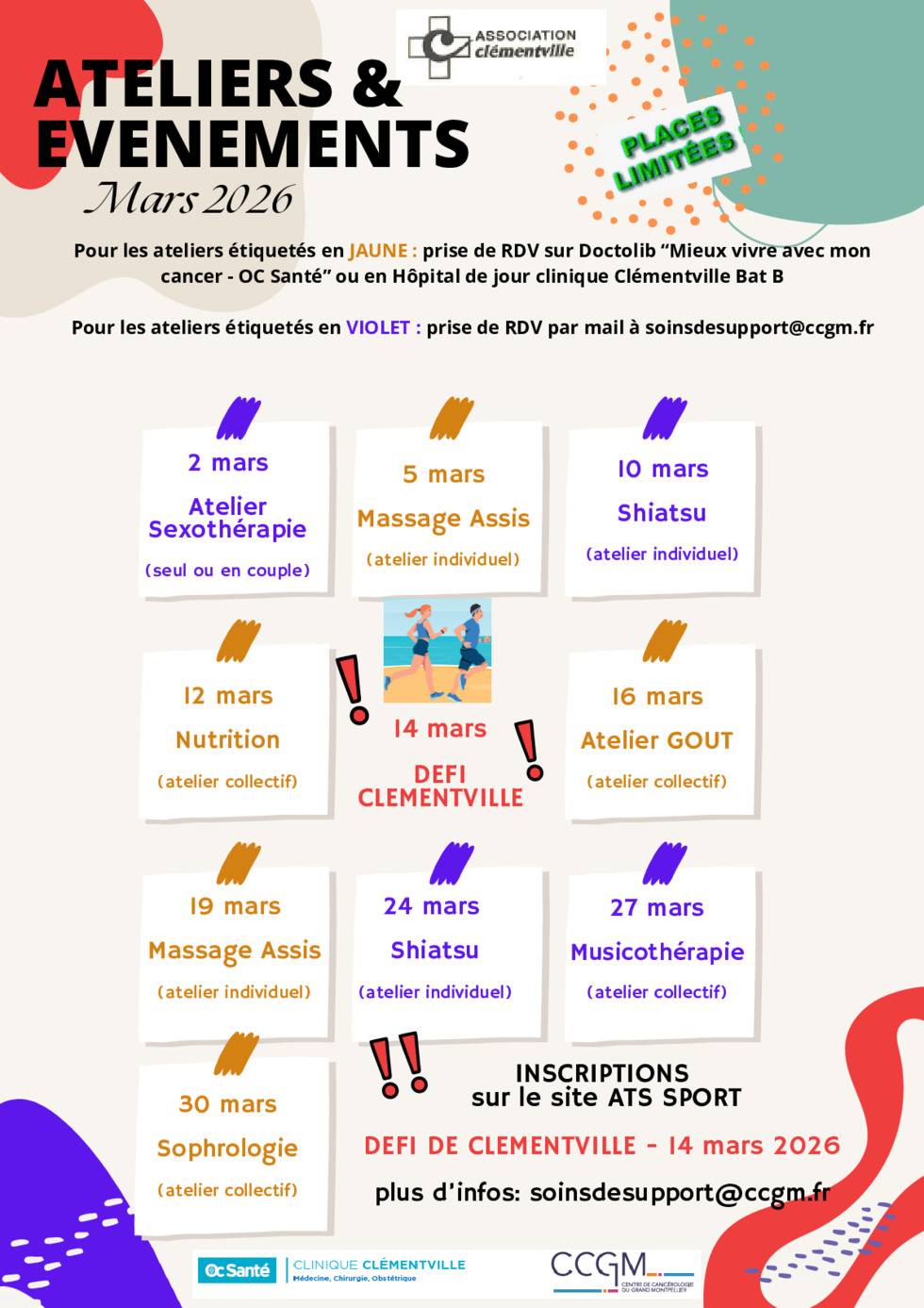 Retrouvez tous les ateliers "bien-être" proposés pour le mois de mars 2026 !